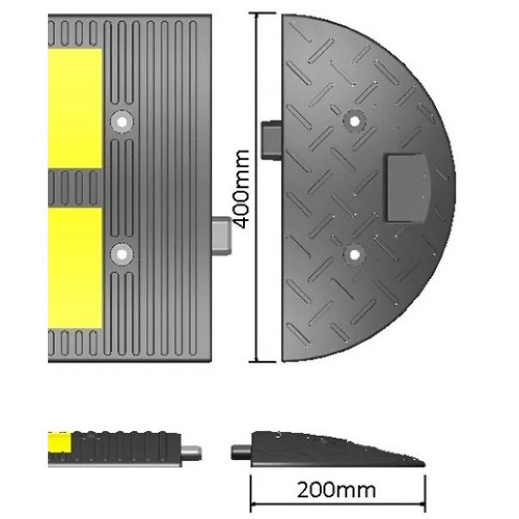 Capat limitator de viteza 200x400x40 mm cu înălțimea 4 cm pentru încetinirea vitezei de până la 30 km/h. Acesta este folosit în apropierea școlilor, grădinițelor, în parcările centrelor comerciale, benzinării și în toate zonele unde se dorește limitarea vitezei.