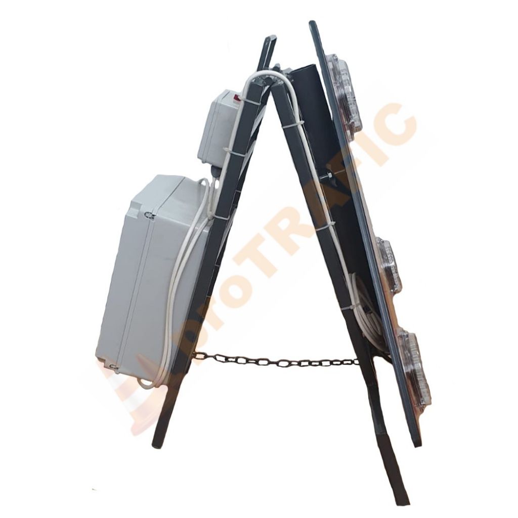 Dispozitivul electronic asigura alimentarea si comanda lampilor cu lumina intermitenta prin cuplarea acestora la mufa dispozitivului. La aceeasi mufa se cupleaza si cablul de alimentare, in care incarcarii acumulatorului. Panoul de comandă conține acumulatori, este detașabil și se incărca de la o sursă de tensiune de 220 V. Acumulatorul are o capacitate de 7Ah si asigura o autonomie de alimentare de 20 ore. Secventa si frecventa de aprindere a lampilor, fie ca este simultan sau intermitent, poate fi selectata dupa preferinta fiecarui client. Gradul de protectie electrica este IP 56. Durata de incarcare a acumulatorului este de minim 6 ore. In cazul in care dispozitivul ramane conectat la reteaua de alimentare un timp mai mare decat cel necesar reincarcarii complete a acumulatorului, incarcare acumulatorului este oprita automat prin intermediul circuitului electronic de pe plata electronica a dispozitivului.