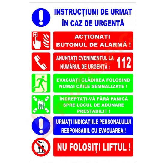 Indicator de securitate de informare generala "Instructiuni de urmare in caz de urgenta"