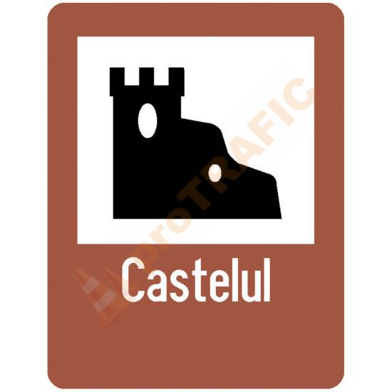 Acest indicator rutier de informare turistică, se întâlnește pe sectoarele de drum din apropierea unui castel sau o cetate.