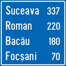 Indicator rutier de orientare F48 Confirmarea directiei de mers spre localitati mai importante si distantele pana la acestea