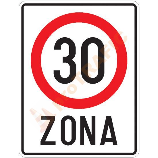 Indicator rutier interzicere sau restrictie C44 Zona cu viteza limitata la 30 km/h este instalat in zona in care viteza de circulatie trebuie limitata la 30 km/h.