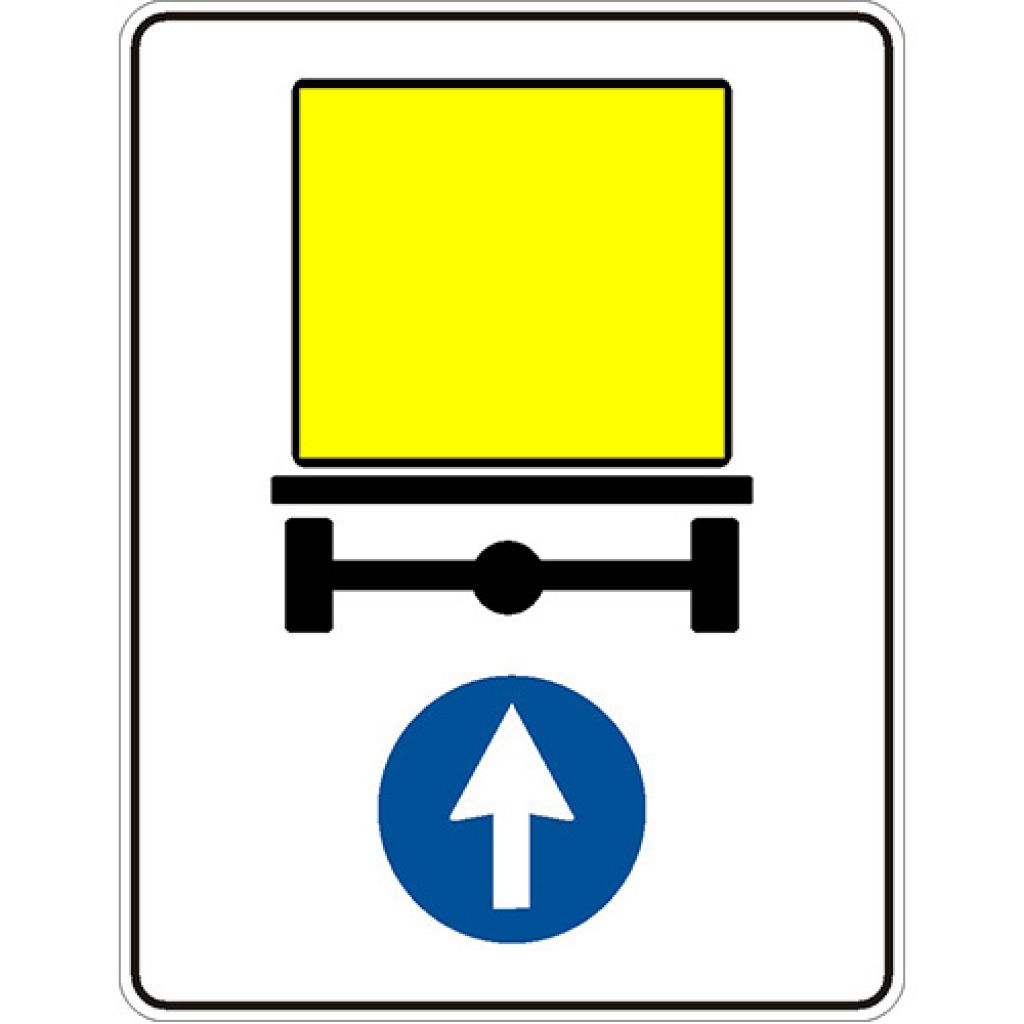 Indicator rutier obligare D17 Directia obligatorie pentru vehiculele care transporta marfuri periculoase