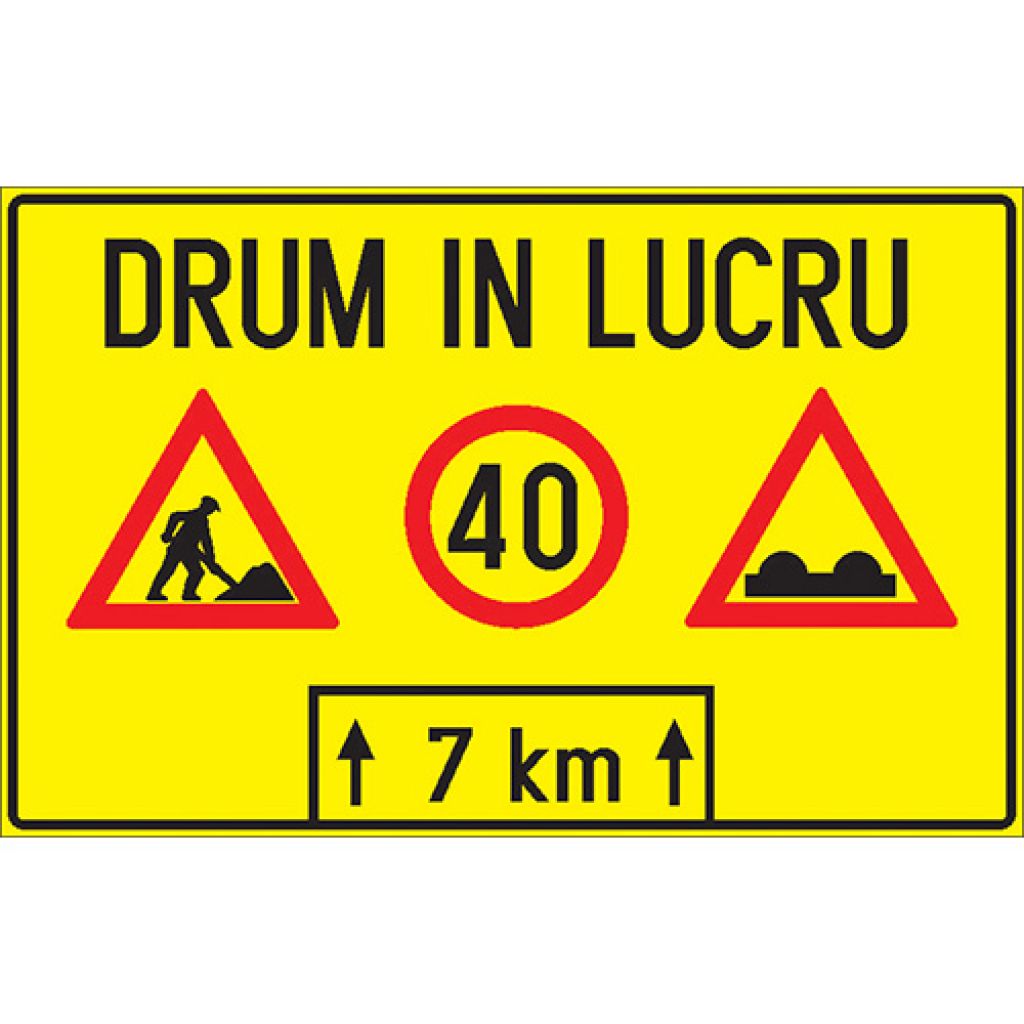Este utilizat pentru a avertiza soferii ca vor intalni lucrari pe o distanta mai lunga, iar traficul poate fi intrerupt sau deviat temporar.