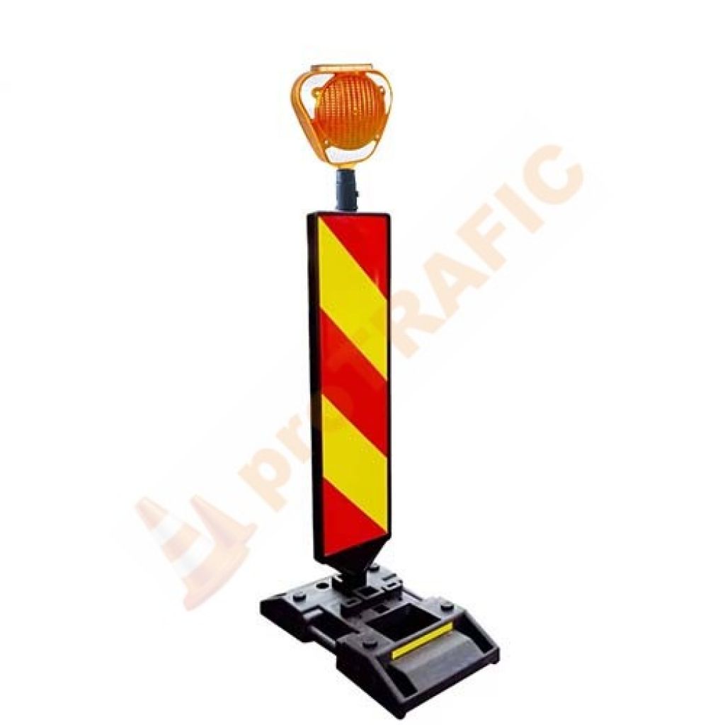 Kit baliza semnalizare cu baza 28kg, folie clasa 1 cu lampa solara galbena cu adaptor
