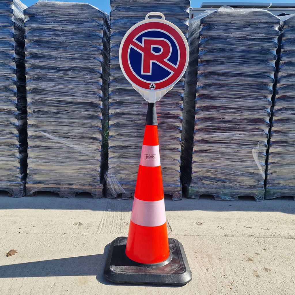 Kit con 900mm cu greutate si indicator Parcare Interzisa 380mm sunt echipamente esentiale pentru siguranta in trafic, fabricate din cauciuc durabil.