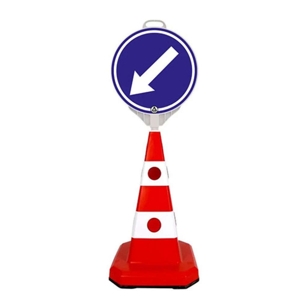 Kit con rutier 600 mm cu indicator Ocolire Stanga sunt echipamente esentiale pentru siguranta in trafic, fabricate din plastic sau cauciuc durabil.