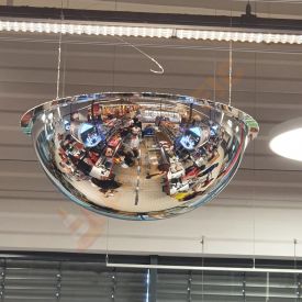 Oglinda siguranta depozit 360 grade, diametru 1000 mm, de interior o utilizăm cu succes în afaceri precum magazine, spații comerciale sau spații industriale. Această oglinda siguranta depozit 360 grade, diametru 1000 mm, de interior se fixează pe tavan cu ajutorul unor șuruburi. Oglindă de supraveghere este special concepută pentru observarea și demascarea hoților. Materialul din care este confectionată este acril ce este cu 70% mai rezistent decât sticlă, este mai ușor și rezistă mult mai mult timp.