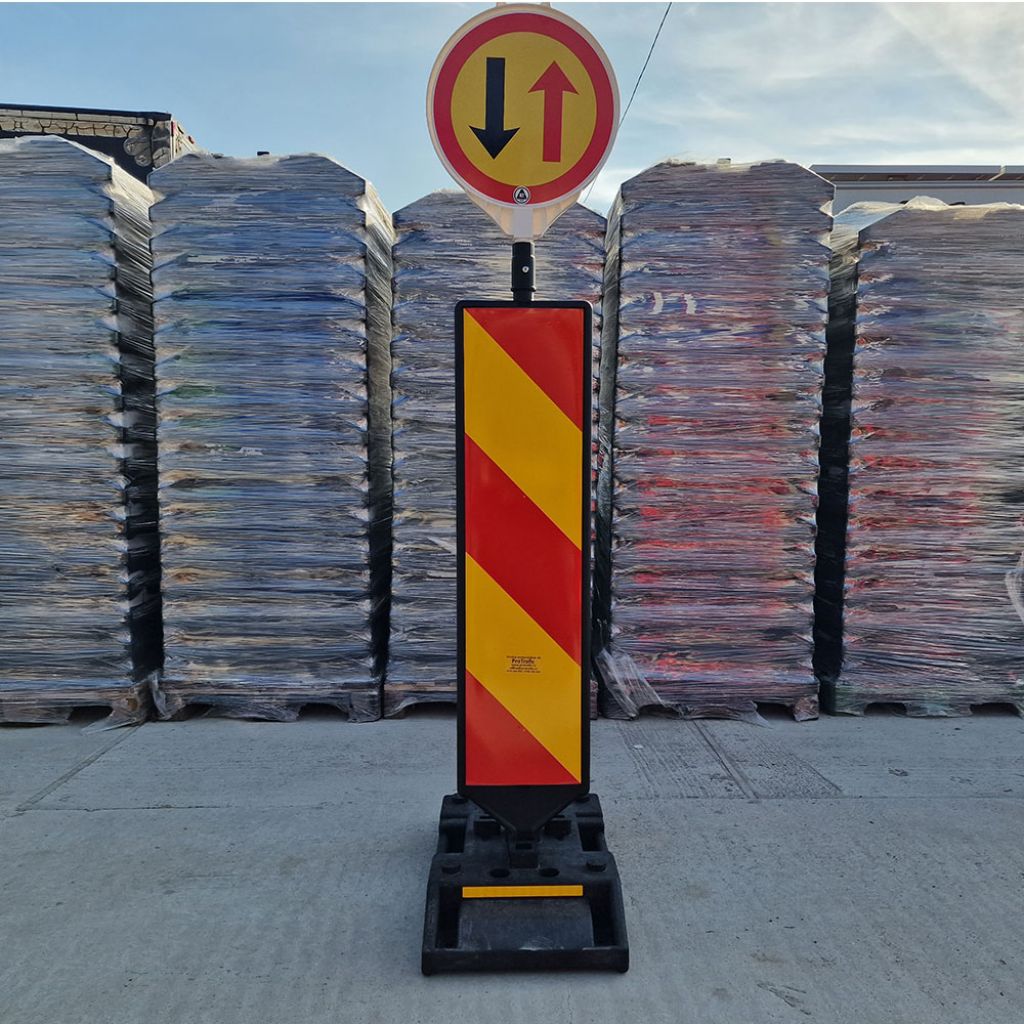 Set baliza semnalizare, folie cl 2, baza 15 kg, cu indicator rotund sunt echipate cu indicatoare rotunde cu diferite semne ce au aplicata folie reflectorizanta.