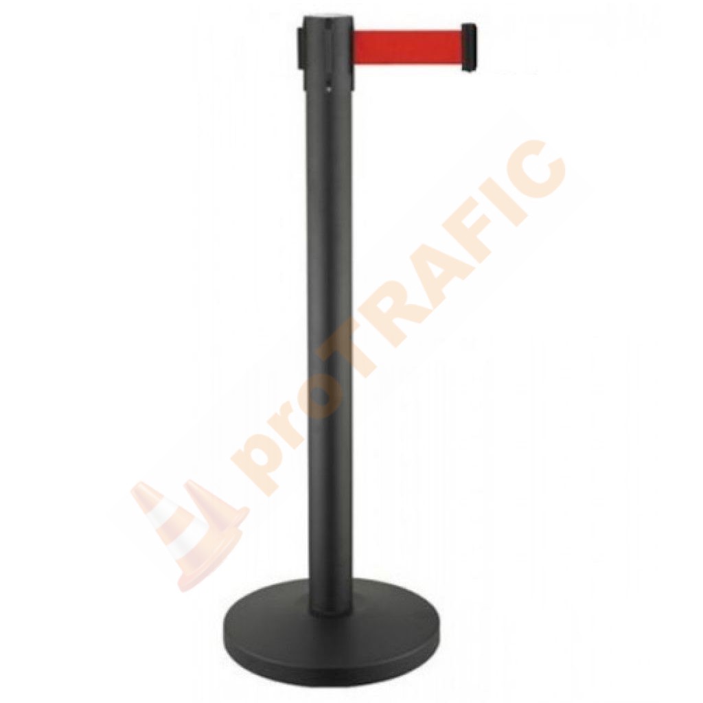 Stalp delimitare negru cu banda rosie folosit la delimitarea zonelor dintr-o anumita incepere unde nu este permisa intrare, la intrarea in restaurante sau hoteluri sau la diverse evenimente sau spectacole.